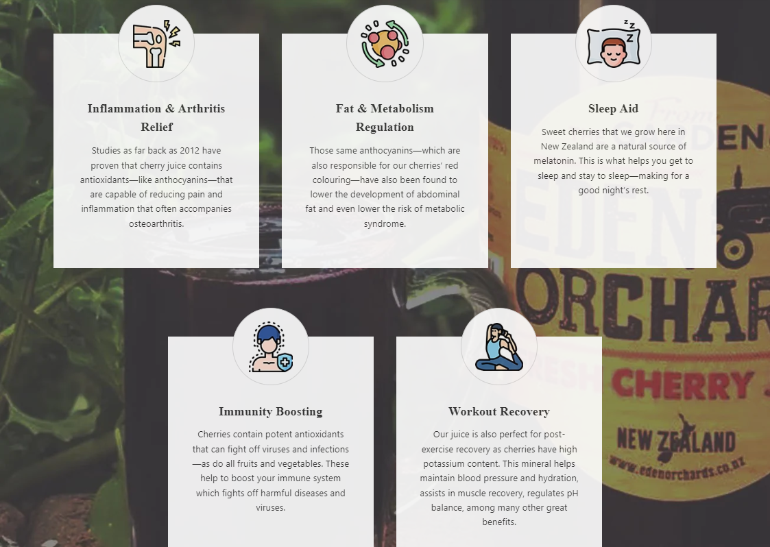 Eden Orchards, a New Zealand-based company, specializes in producing 100% pure cherry juice, along with a range of other fruit juices