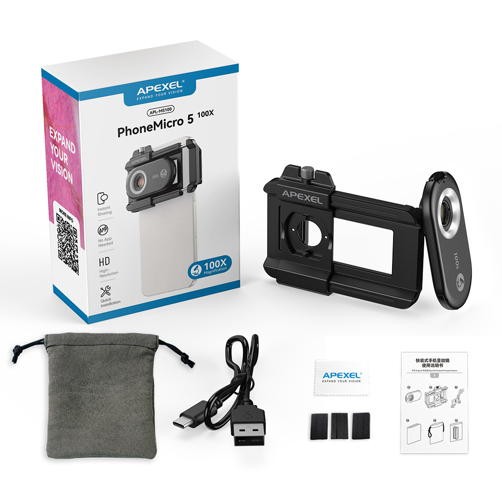 Microscope *1, Quick-Assembly Tension Clamp *1, Type-C Charging Cable *1