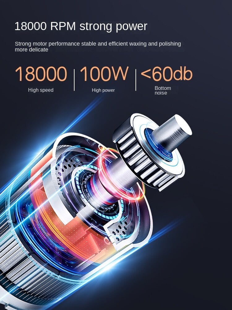 100W high-power two-speed adjustable polishing machine with a maximum motor speed of 1800RPM, ideal for waxes, sealants and glazes.