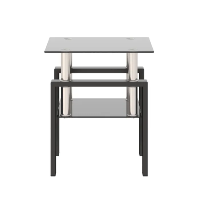 Sleek Modern Design: Featuring a square shape with a tempered glass top and black metal frame, this table exudes