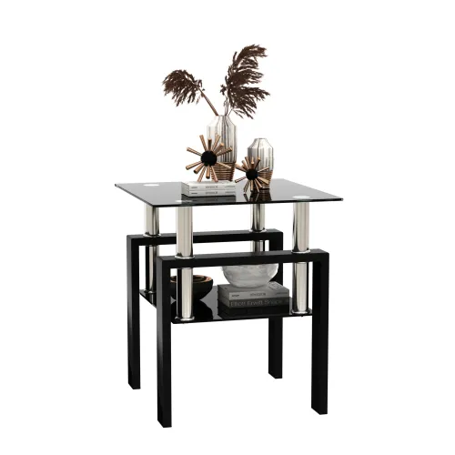 Product Name:1-Piece Modern Tempered Glass Tea Table Coffee Table End Table, Square Table for Living Room, Black
