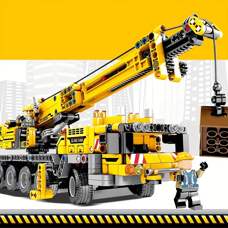 1000+ Pieces Yellow ABS Construction Crane Toy Set with Detailed Mechanism