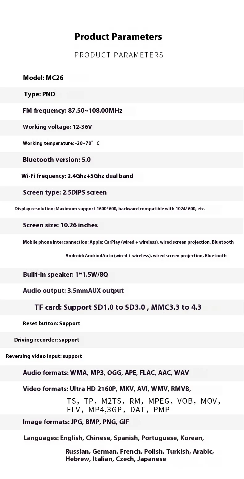 1026-inch Wireless Carplay Recorder Multimedia Car