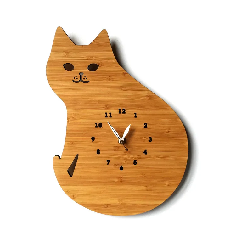 12-Inch Cat/Owl Model Wall Clock – Bamboo Animal Clock – Cartoon Design – Modern European Style – Ideal for Kids' Room Decor