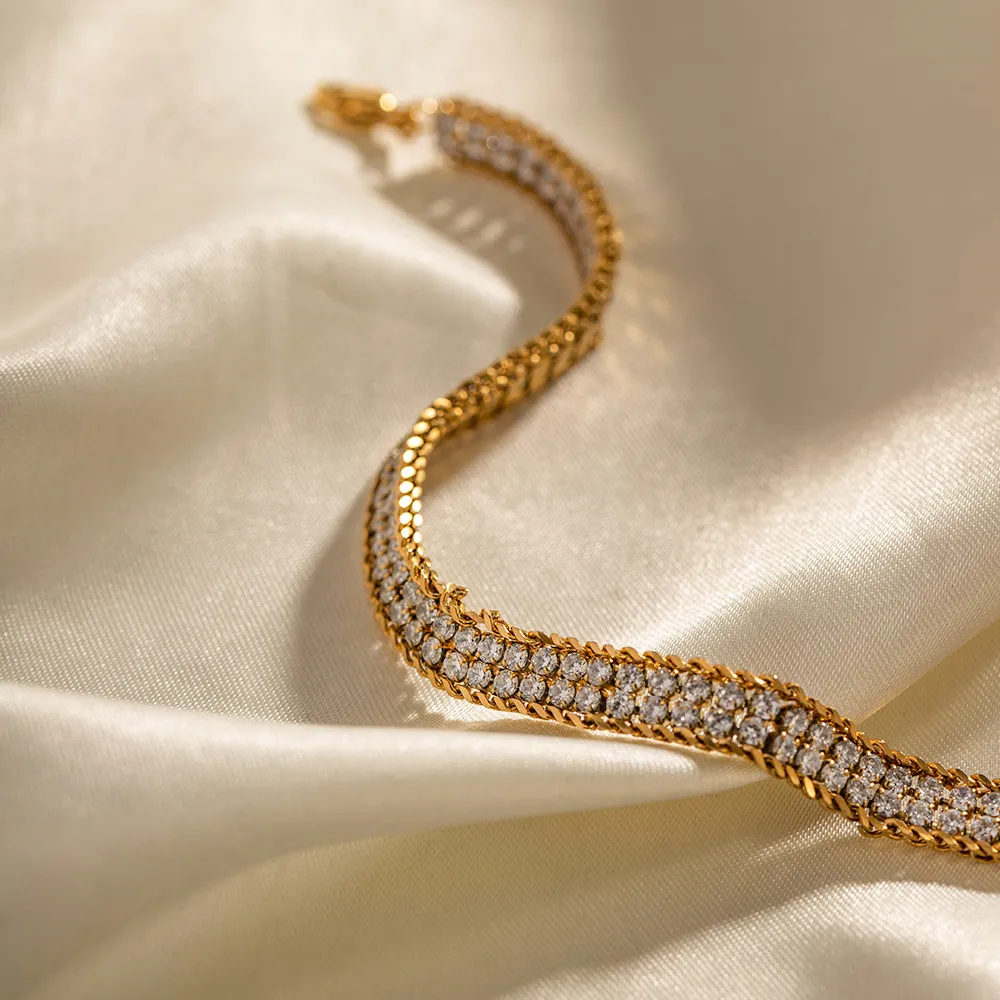 One of the key advantages of 18K gold is its ability to retain its shine over time. The 18K Gold Double-layer White Zircon Bracelet is designed to resist tarnishing and maintain its luster, ensuring that it looks as beautiful years from now as it does today. The high-quality gold and zircon stones ensure that the bracelet’s shine and sparkle endure, providing lasting beauty and elegance for every occasion.