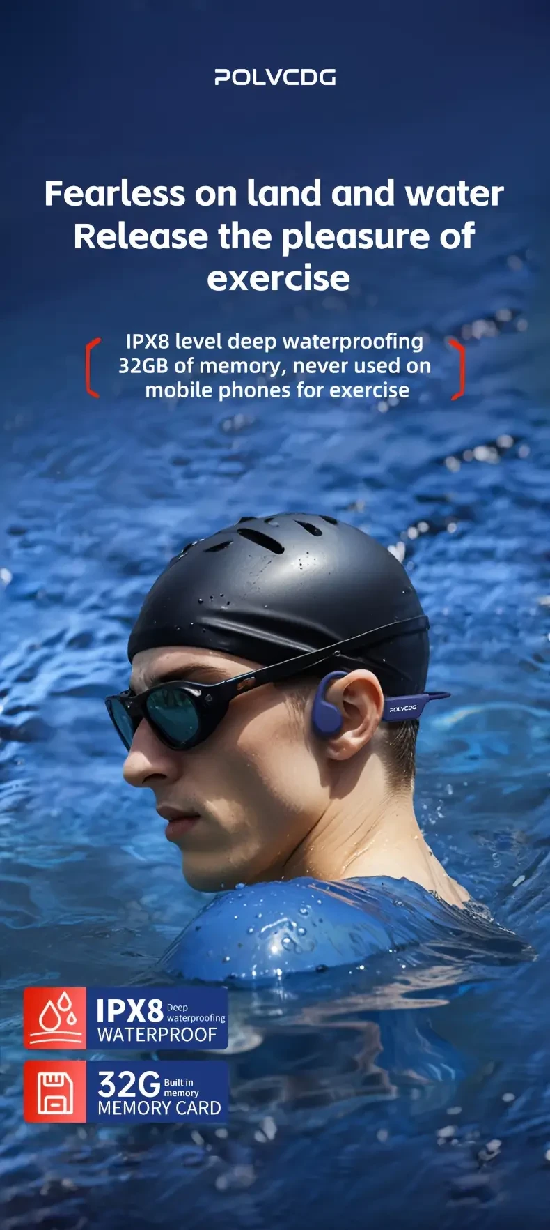 1pc POLVCDG X7 Wireless Bone Conduction Headphones, 10H Playtime, IPX8 Waterproof, 32GB Built-in Memory, Sports Open-Ear Headset with Volume Control, Rechargeable Battery, Compatible with Phones for Swimming, Running, Cycling & Fitness
