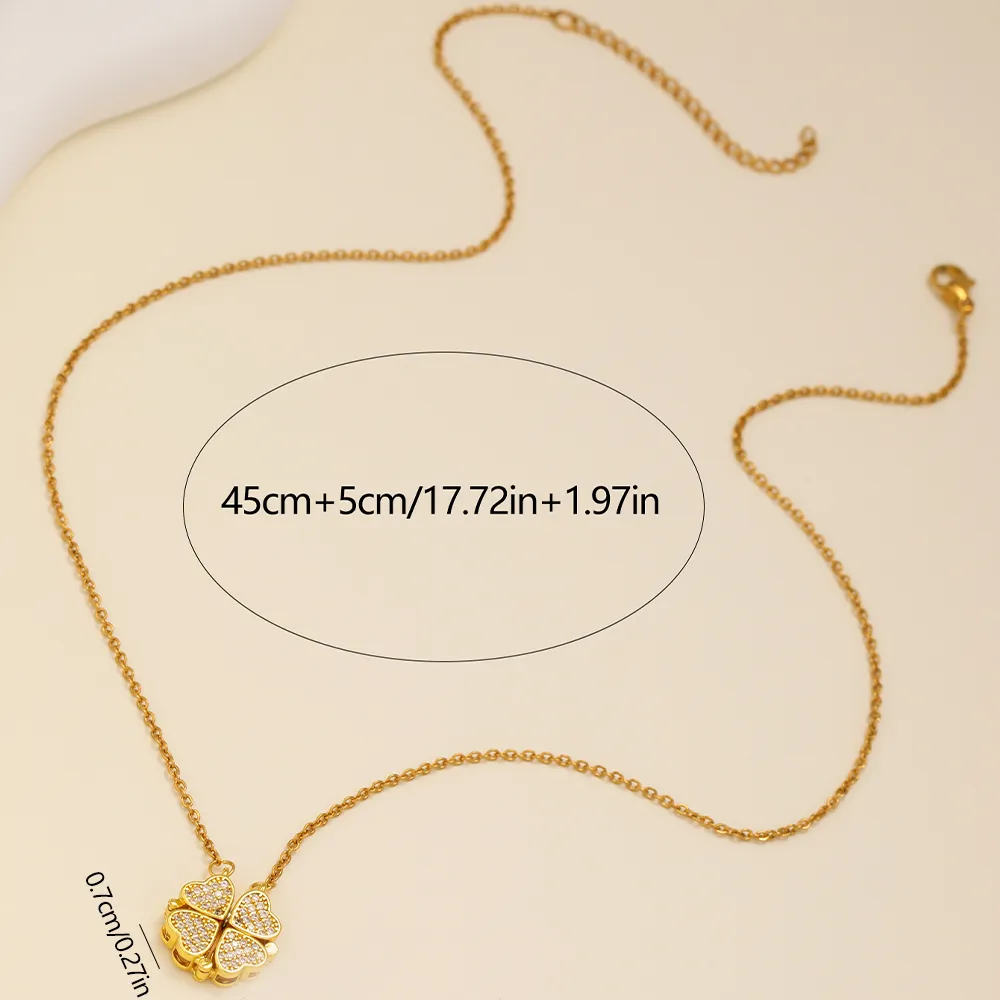 Fashionable Zircon Heart-shaped Necklace with Magnetic Folding Four Leaf Heart-shaped Connection - Perfect for Daily Wear and Dinner Parties