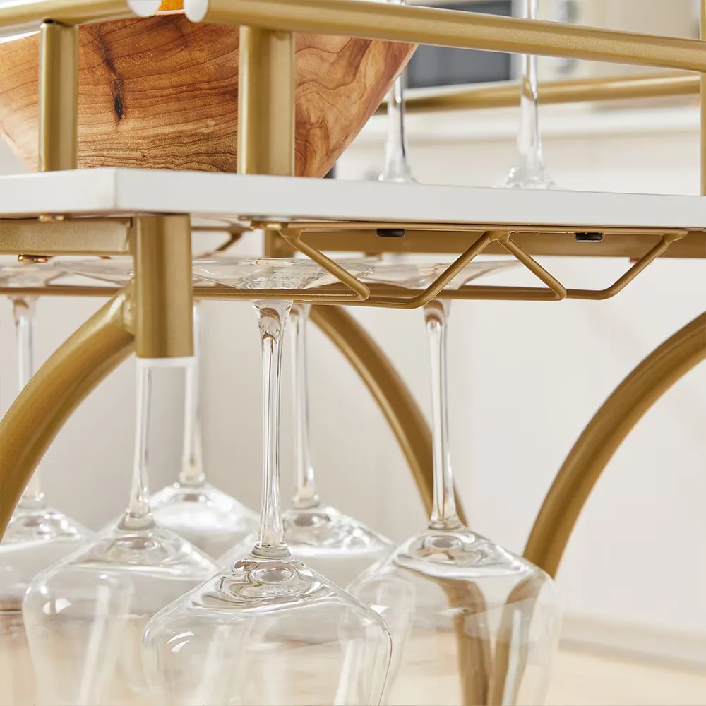 The two-tier design of this bar car maximizes your storage and serving capacity, ensuring that you have everything you need on hand. The top tier provides a sleek and spacious area to mix and serve drinks, while the bottom tier serves as a convenient storage space for bottles, glasses, and accessories. This feature keeps your bar setup organized and ensures that everything is within easy reach for both the bartender and guests.