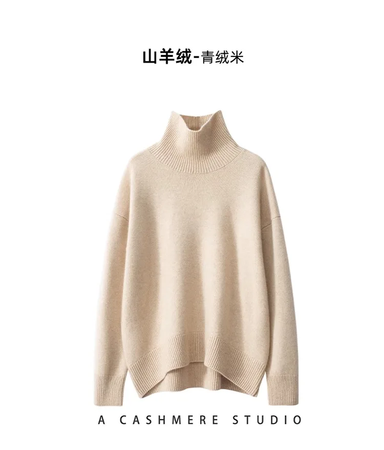 2024 Autumn and Winter New Thick Cashmere Sweater Women High Neck Pullover Sweater Warm Loose Knitted Base Sweater Jacket Tops