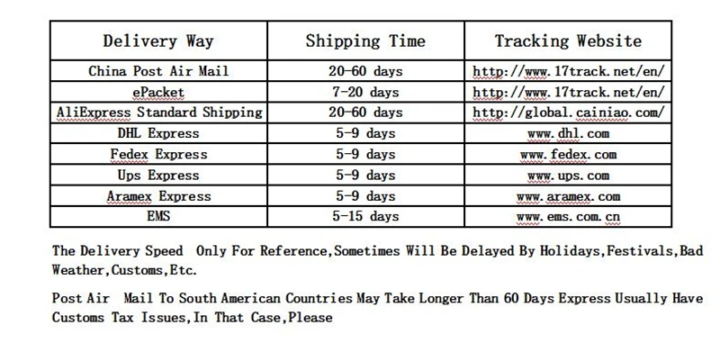 A: Normally takes 15~35 days to United States and Europe, 20~60 days to other countries.