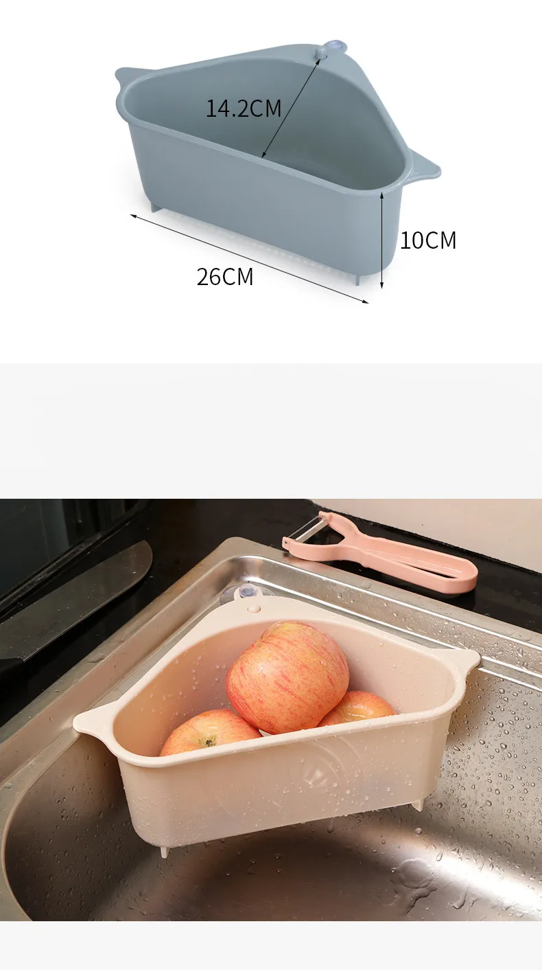Organize your kitchen sink with the Multi-function Triangle Storage Rack. Perfect for dishwashing sponges and brushes, it offers efficient drainage and space-saving storage.