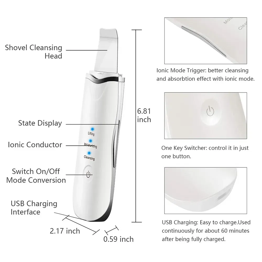 Deep Cleansing and Exfoliation: The ultrasonic spatula vibrates at high frequencies, gently exfoliating the skin and