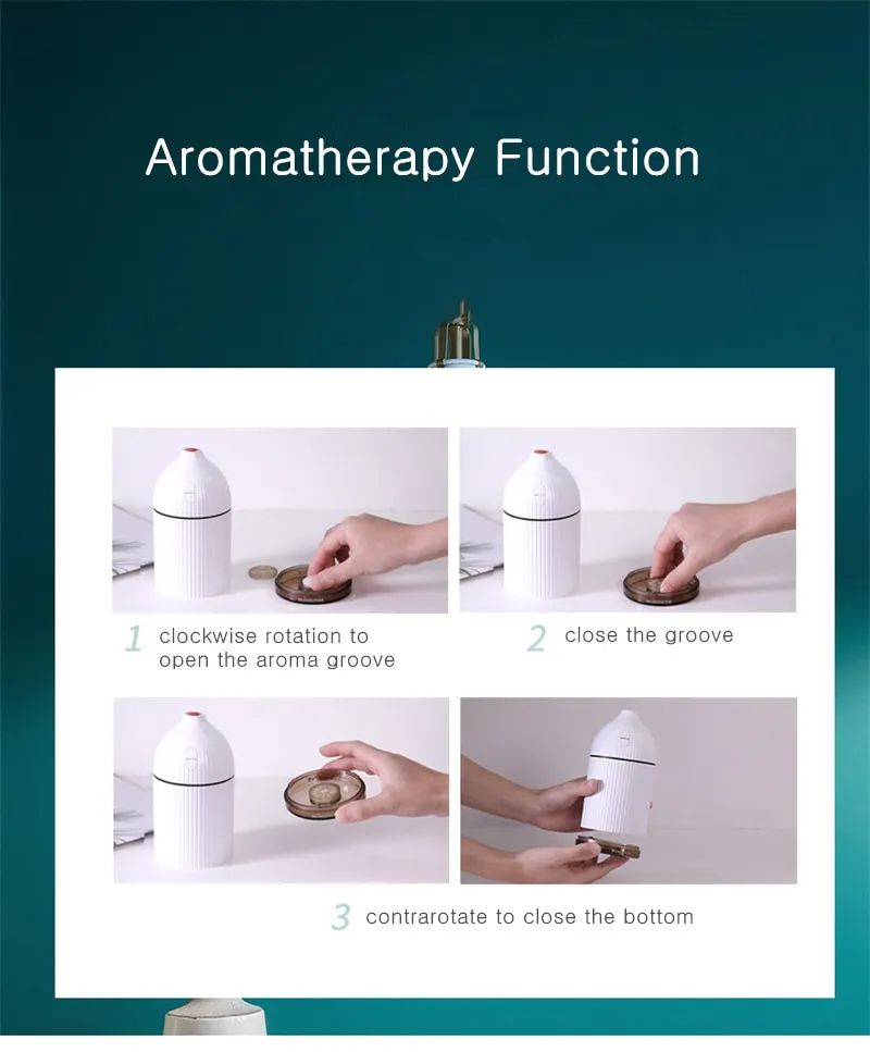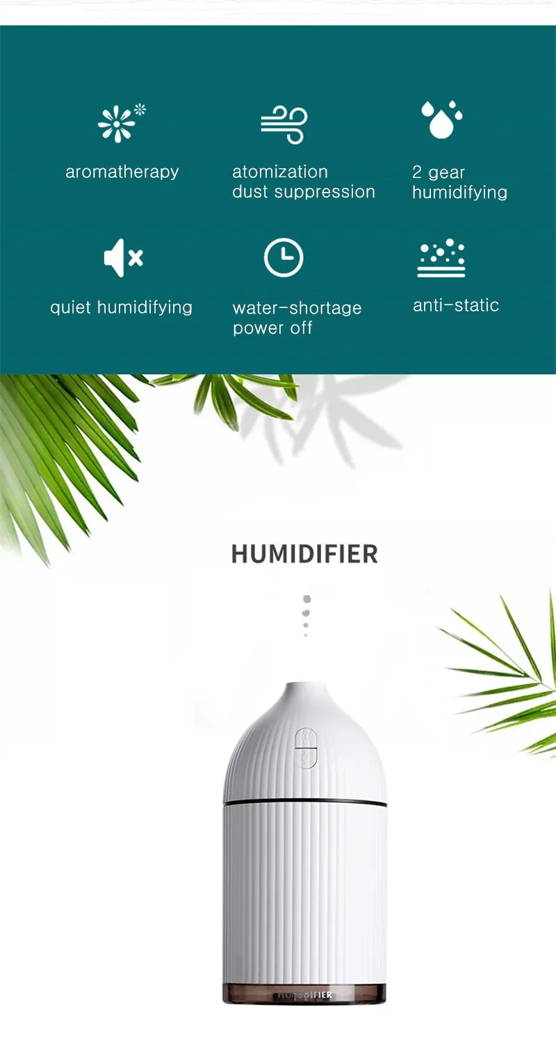 Designed to be compact and easy to use, this diffuser is perfect for anyone looking to improve their well-being and the overall air quality in their space. The USB-powered operation makes it convenient and versatile, while the 300ML water tank ensures extended use without frequent refills. Whether you're looking to relax, de-stress, or simply freshen up your environment with your favorite essential oils, this diffuser offers an effective and enjoyable solution.
