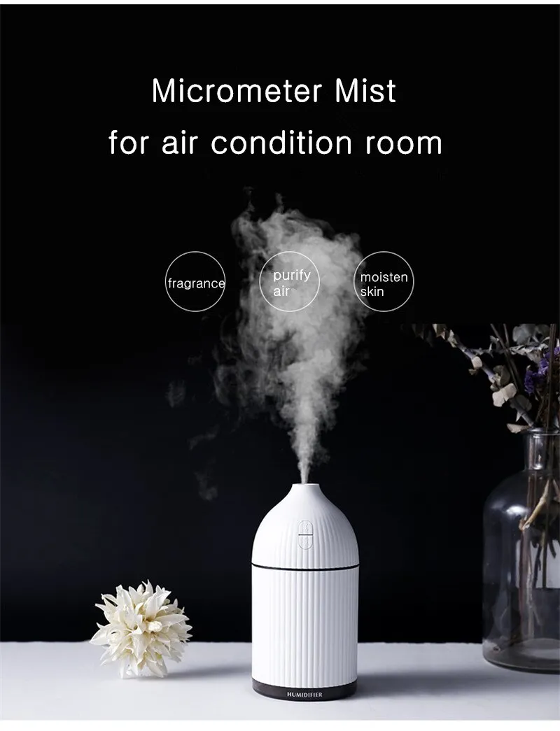 300ML White Aromatherapy Diffuser USB Ultrasonic Air Humidifier Mist Maker Aroma Essential Oil Diffuser for Home with LED Light