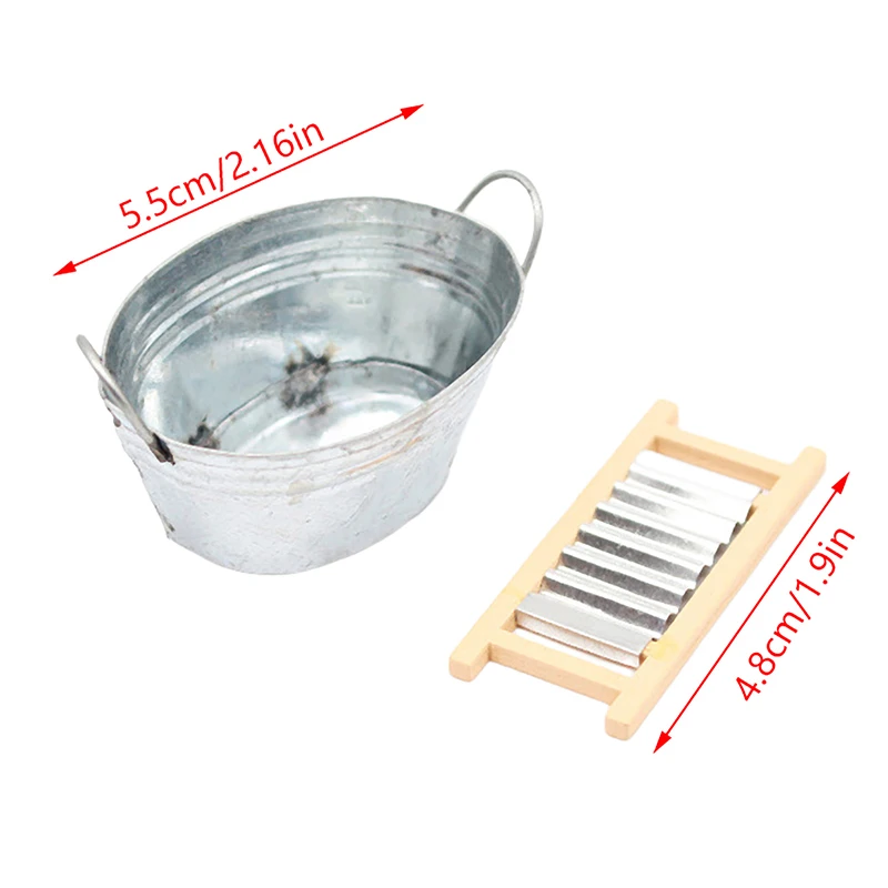 Size: Iron Bucket is 5.5cm/2.16in long; washboard is 4.8cm/1.9in long