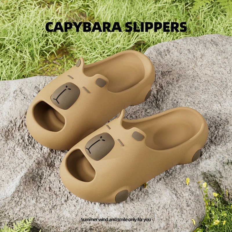 Women Cute Cartoon Capybara Slippers Men Popular Summer EVA Sandals Couple Unisex Non-slip Home Indoor Outdoor House Shoes