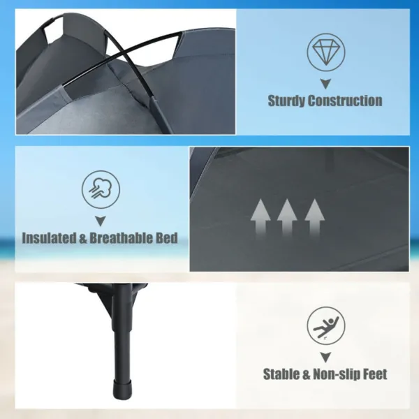 Constructed from durable, weather-resistant materials, this dog bed is built to withstand outdoor elements. The fabric is designed to resist water, dirt, and other environmental factors, making it suitable for use in all weather conditions. The sturdy frame ensures that the bed holds up well, even with regular outdoor use.