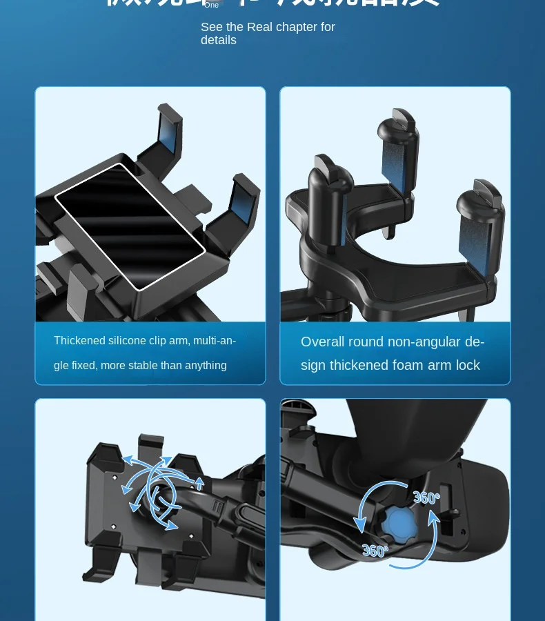 360° Car Rearview Mirror Phone Holder for Car Mount Phone and GPS Holder Support Rotating Adjustable Telescopic Phone Stand