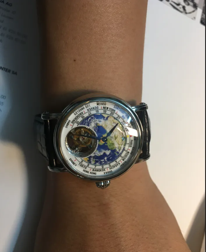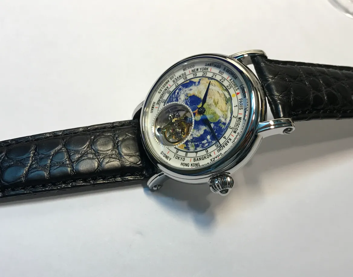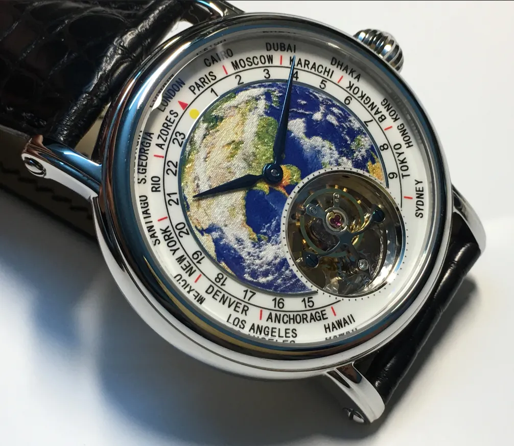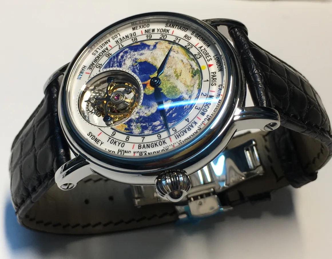 the Earth. This visually striking feature adds a unique element to the watch, making it not only a timepiece but also a conversation