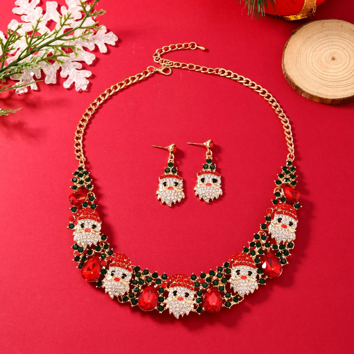 Get into the holiday spirit with our 3pcs Christmas Necklace & Earrings Set, featuring a fashionable Santa Claus design embellished with sparkling colored rhinestones. This beautiful jewelry set includes a shiny Santa Claus necklace and matching earrings, making it the perfect festive accessory for holiday parties, gatherings, or as a thoughtful gift. Designed to capture the magic of Christmas, this set combines style and charm, giving you an elegant, seasonal look that’s sure to turn heads.