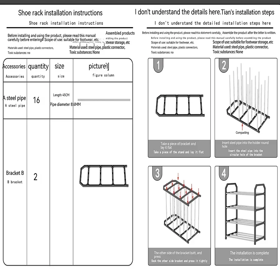- Galvanized steel tubes provide a sturdy and rust-resistant frame to support your shoes and ensure long-lasting durability.