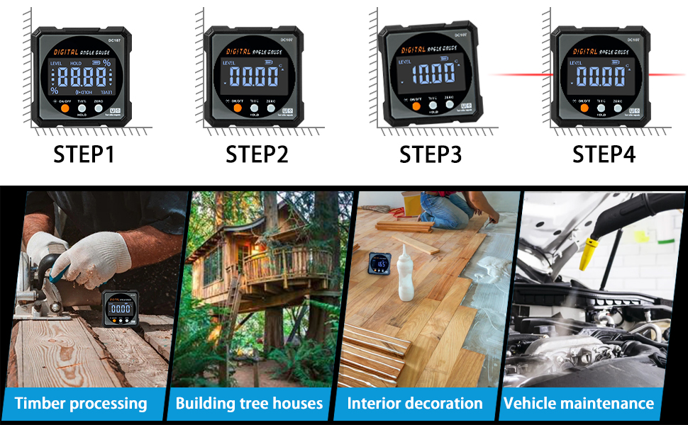 slopes, or other angled surfaces, the 4-Side Magnetic Digital Angle Gauge with Laser makes your work faster, more accurate,