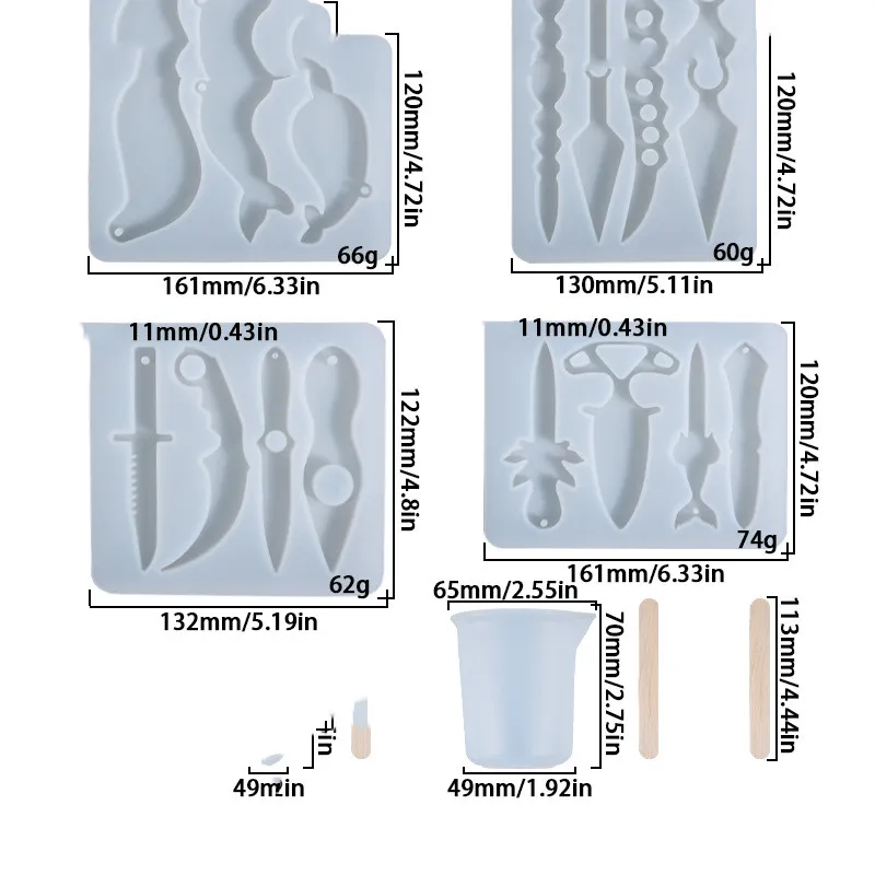 Discover the perfect tool for crafting your next defensive knife with the 4 Types of Defensive Knife Silicone Mold with Mirror Surface. These molds are designed for both beginners and experienced knife makers, offering precision and reliability in every mold. The mirror surface finish ensures a smooth, polished outcome, perfect for creating durable, sharp, and functional knives for self-defense or collection.
