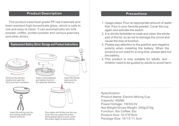 self-stirring mug can mix them all for you automatically. Just wash it with running water and it's ready to use again. Easy to clean and