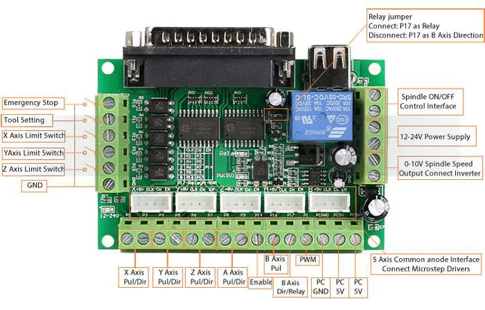 5 Axis CNC Breakout Board Interface Mach3 CNC Router Kit