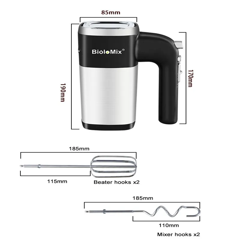 500W High Power Motor: Equipped with a powerful 500W motor, this hand mixer provides excellent mixing power to handle even