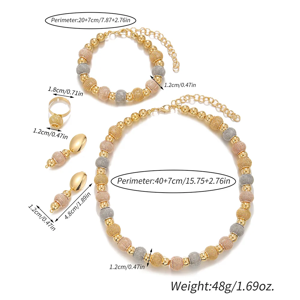 5Pcs Fashionable Metallic Beaded Necklaces Two Color Gold Bead Earrings Bracelets Suitable For Daily Wear Holiday Jewelry Gifts