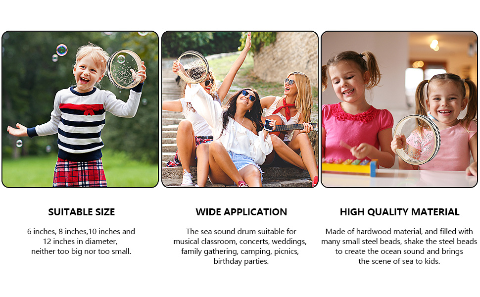 - What You Will Receive: The package comes with 4 pieces of Sea Drum in 4 different sizes, respectively are 6 inches, 8 inches, 10 inches and 12 inches in diameter, the quantity can meet your daily family or school usages.
