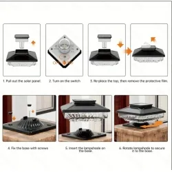 Our outdoor solar post cap light fits 4x4 5x5 6x6 Wooden Posts.1000mAh battery, so it can stay lit all night after fully charged. Automatic switch design, dusk to dawn design. IP65 waterproof, you don't need to worry that it will stop working on rainy days. In addition, it is easy to install, you don't use any tool.