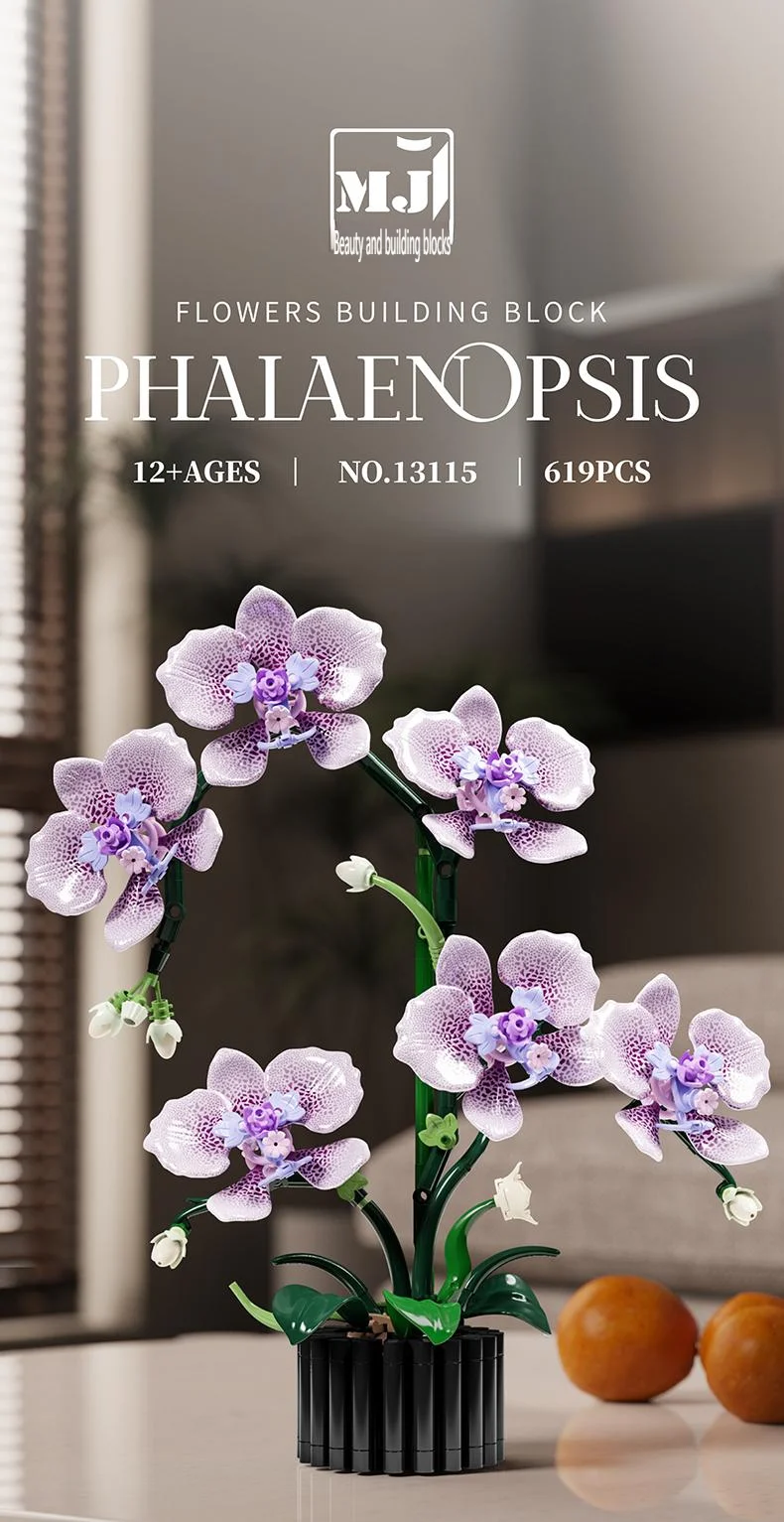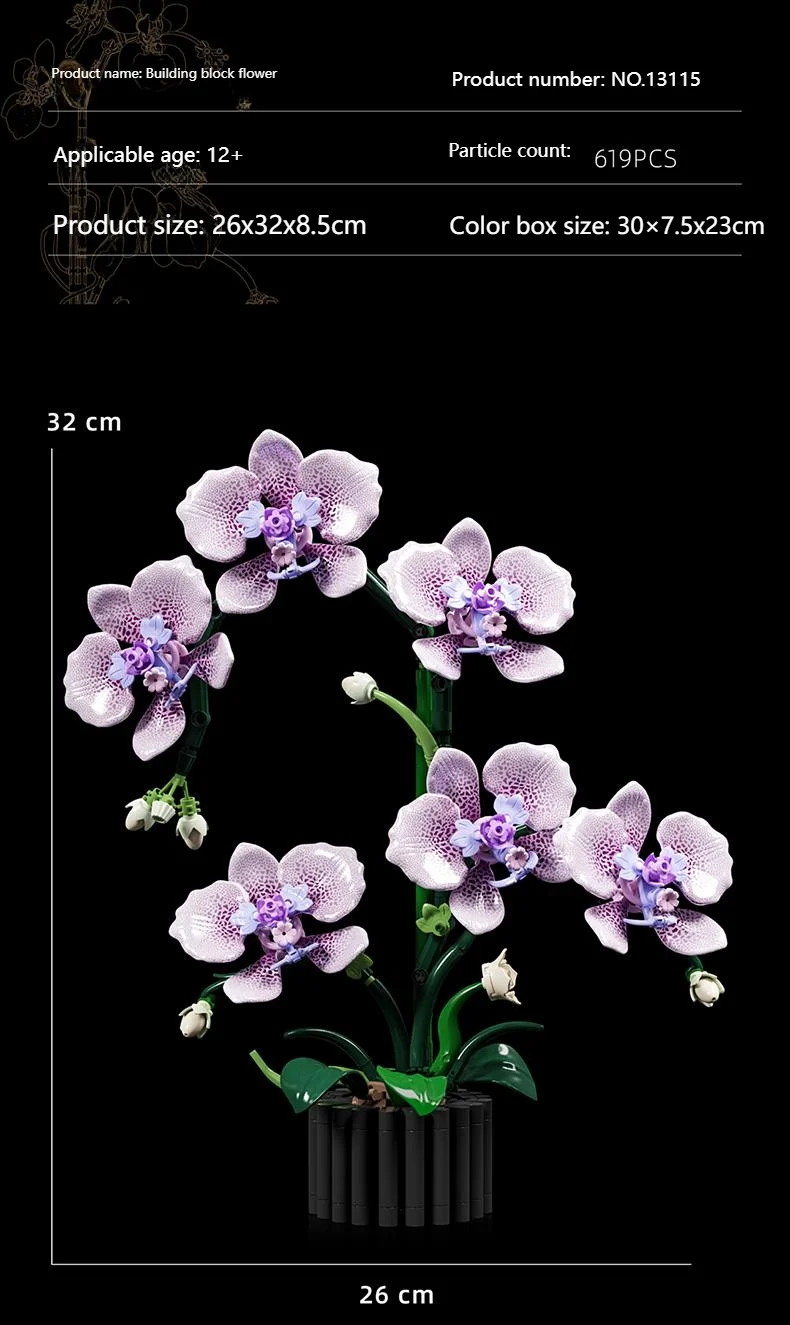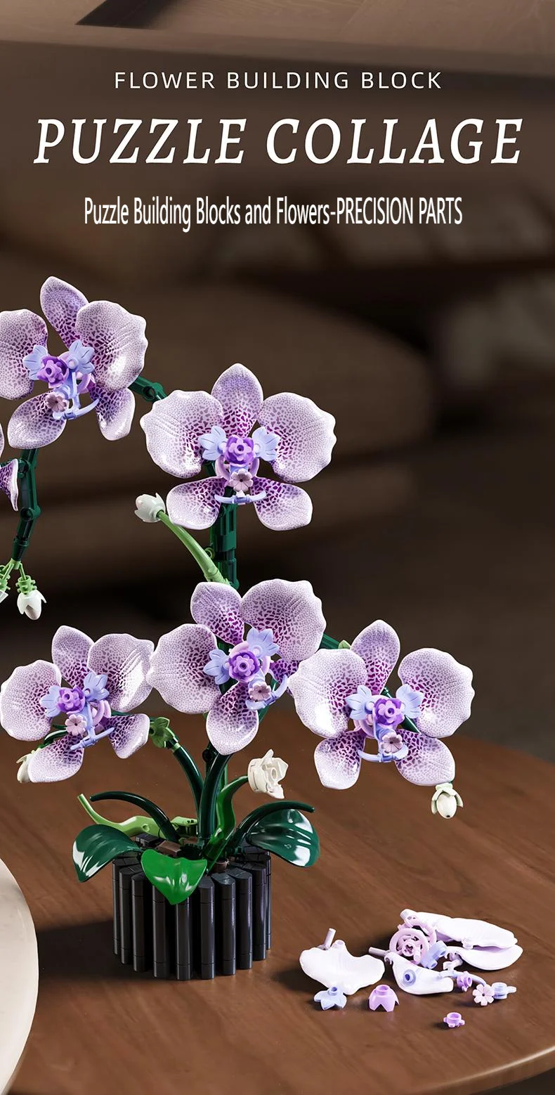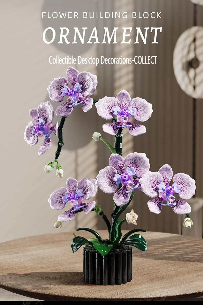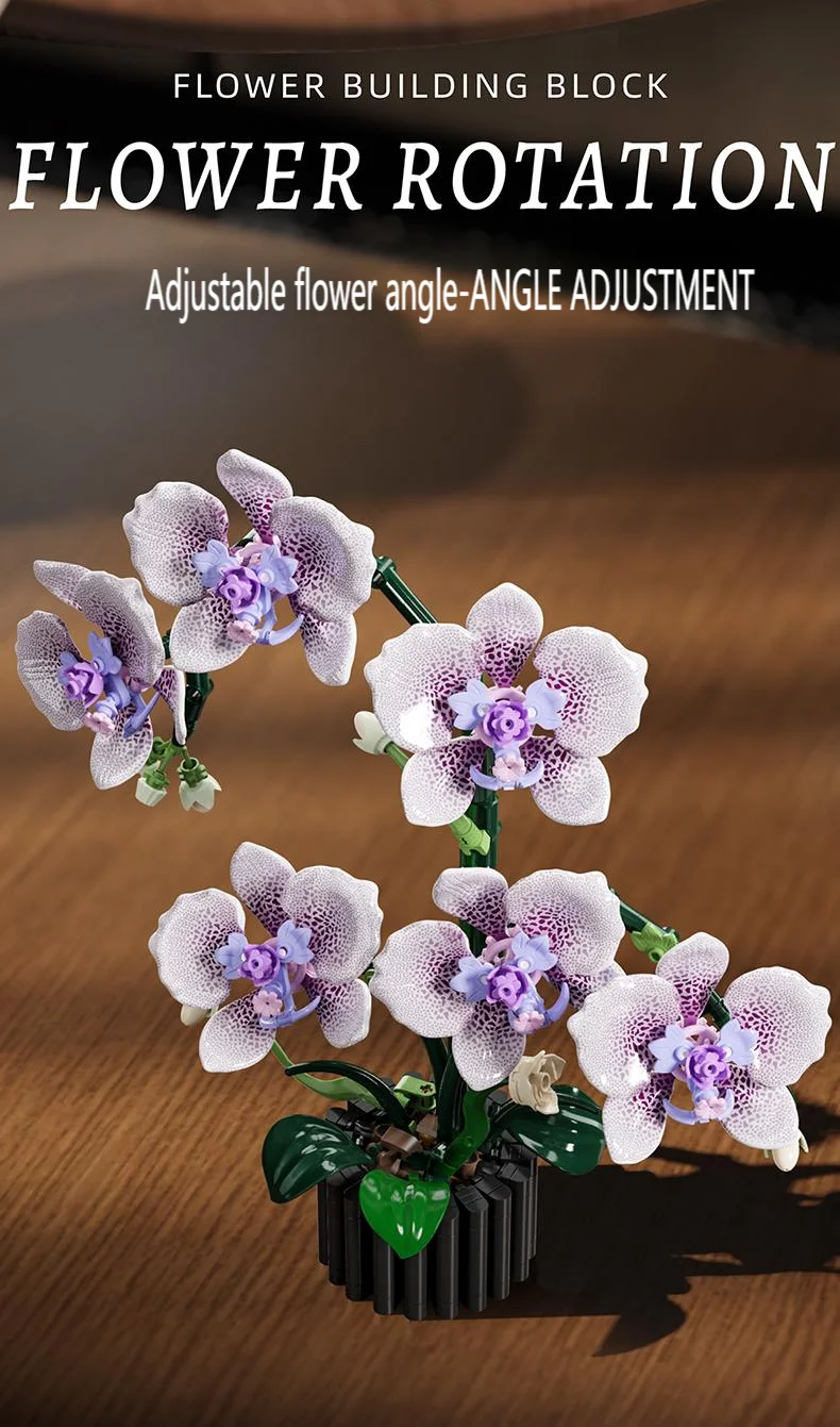 619PCS Flower Building Block Set Phalaenopsis Flower Toy Assembly Bricks Desktop Decoration Enternal Flower Children Gift