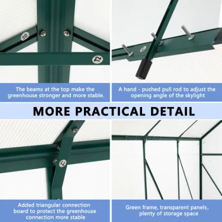 Durability and Stability: The aluminum frame, polycarbonate panels, and anchor system ensure that your greenhouse remains