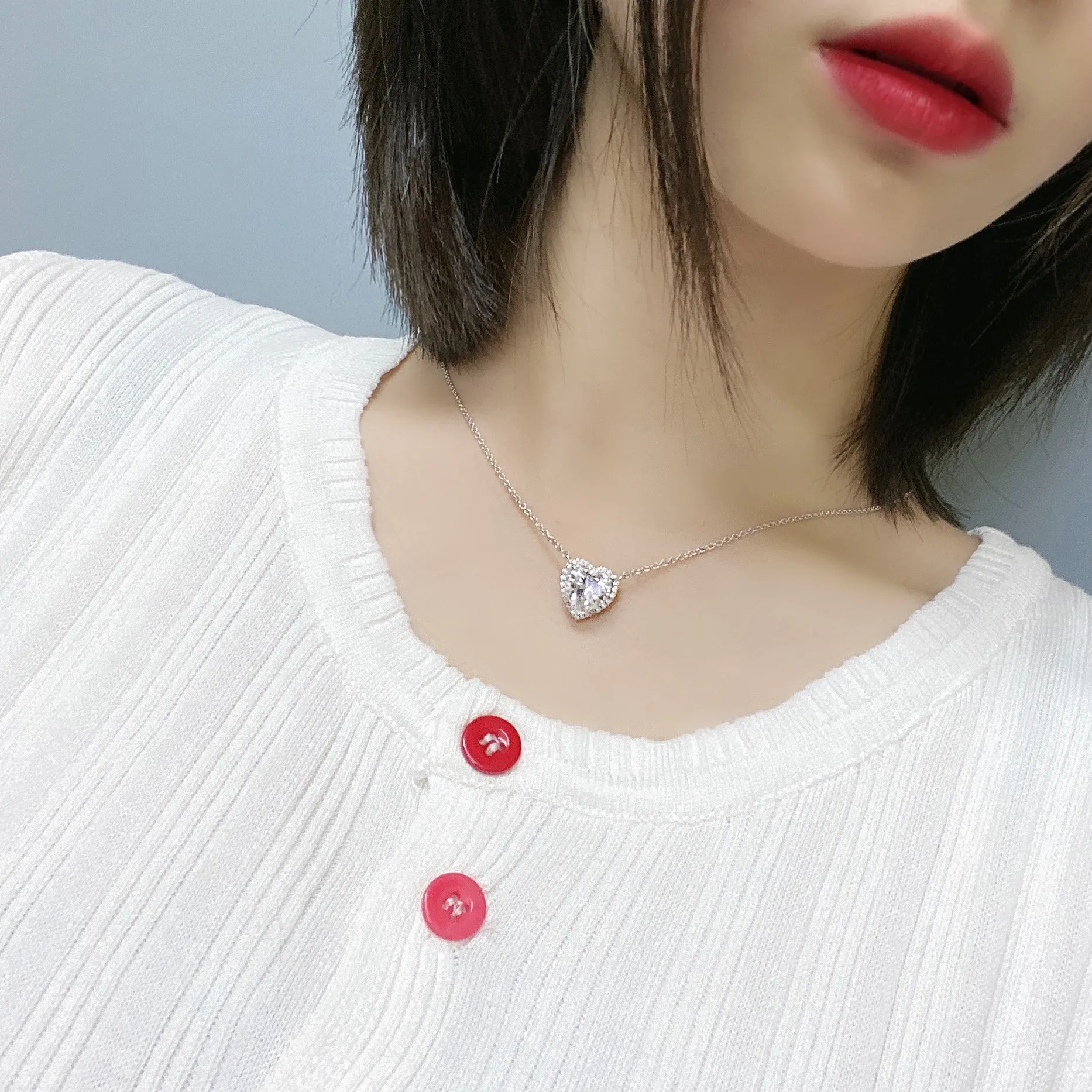 925 Sterling Silver Heart Cross Chain Inlaid Center Stone Women's Necklace: A Beautiful Symbol of Love and Faith