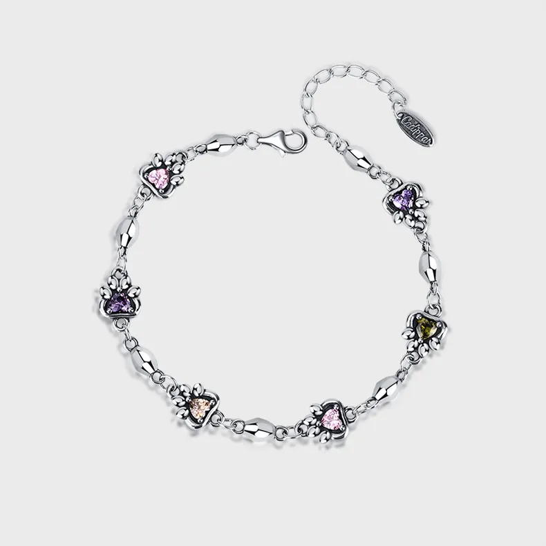 925 Sterling Silver Rainbow Love Zirconium Cat Claw Stone Chain Bracelet for Women: A Sparkling Expression of Love and Elegance