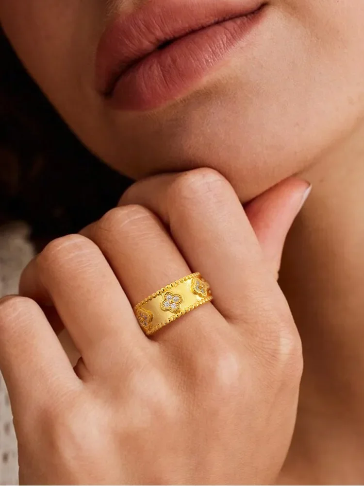 designed for women who appreciate the fusion of vintage aesthetics and modern luxury. This exquisite ring features a delicate clover motif,
