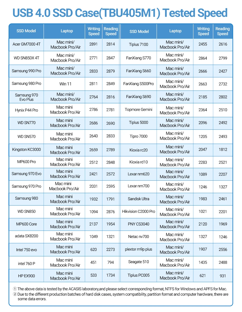 1. Wide compatibility: Acasis 40Gbps USB 4.0 Case is compatible with the thunderbolt 4/3, USB 3.2/3.1/3.0.