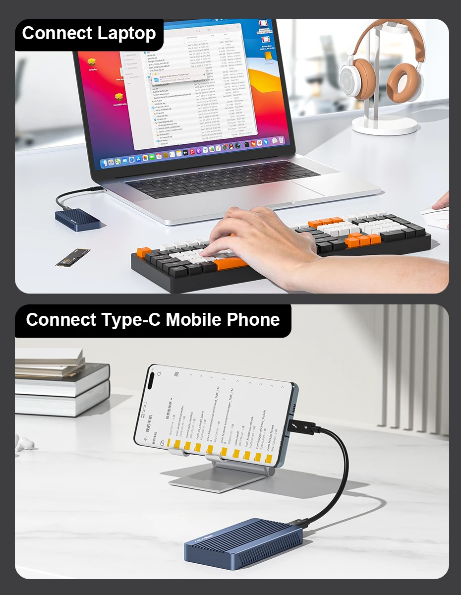 Powered by USB 4.0 and Thunderbolt technology, the SSD case delivers unmatched transfer speeds, ideal for large files, 4K video editing, and intensive applications.