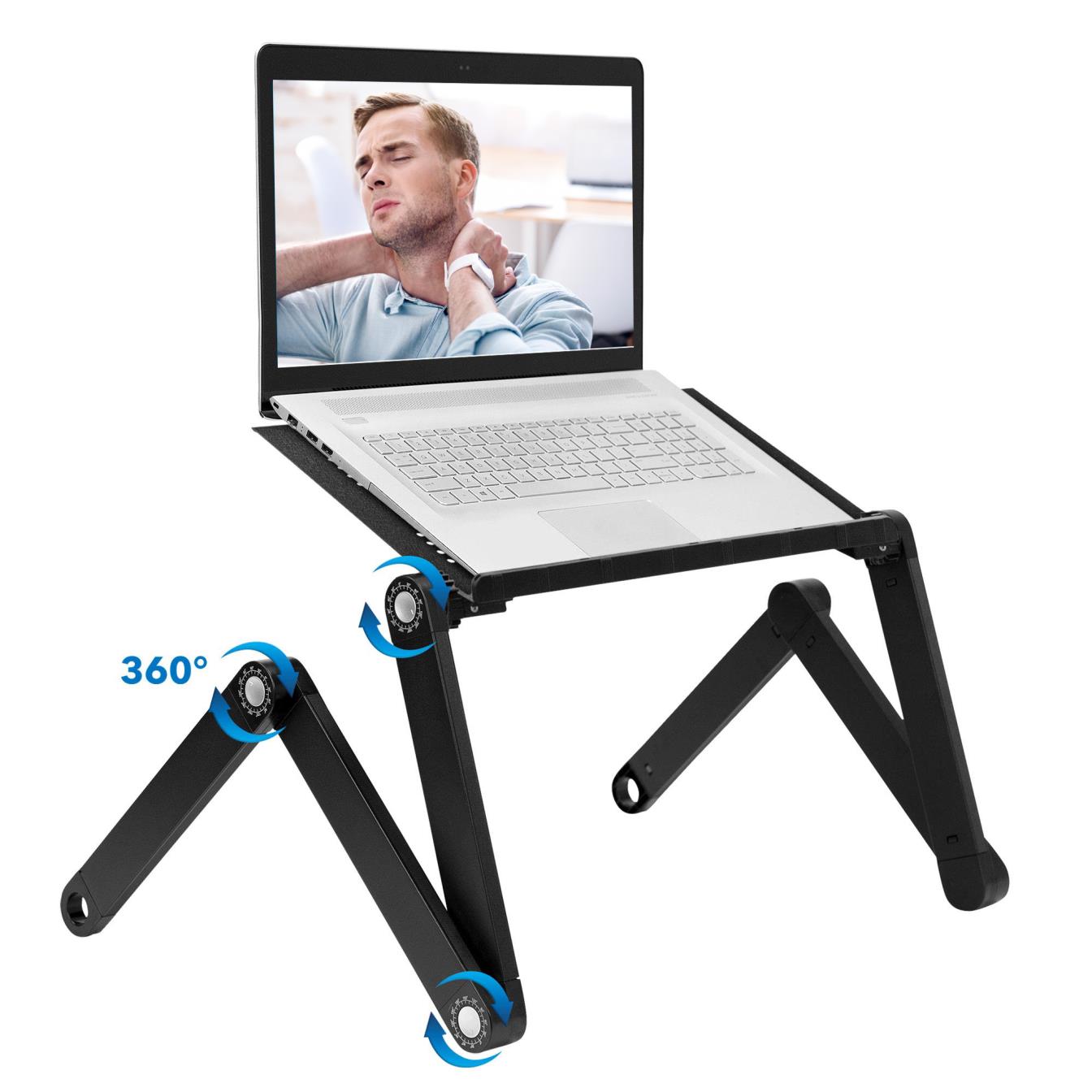 - Our laptop folding stand can also be used for a TV dinner tray, sound equipment, projector, standing desk, book tray, writing desk, and tablet holder. Includes non-slip feet for use on tabletops and desktops.