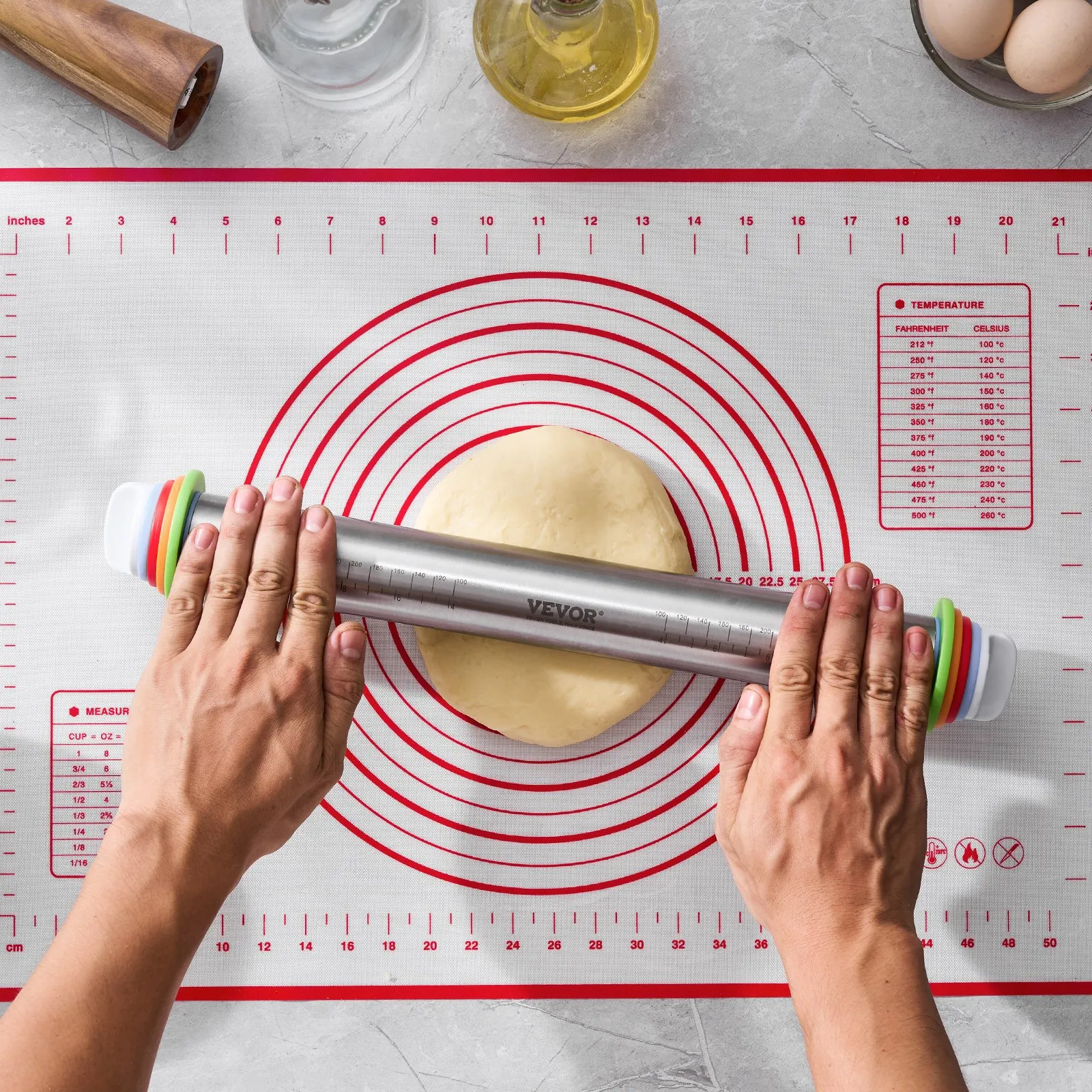 Non-Stick Baking Mat: The included baking mat provides a smooth, non-stick surface to roll your dough on. This eliminates