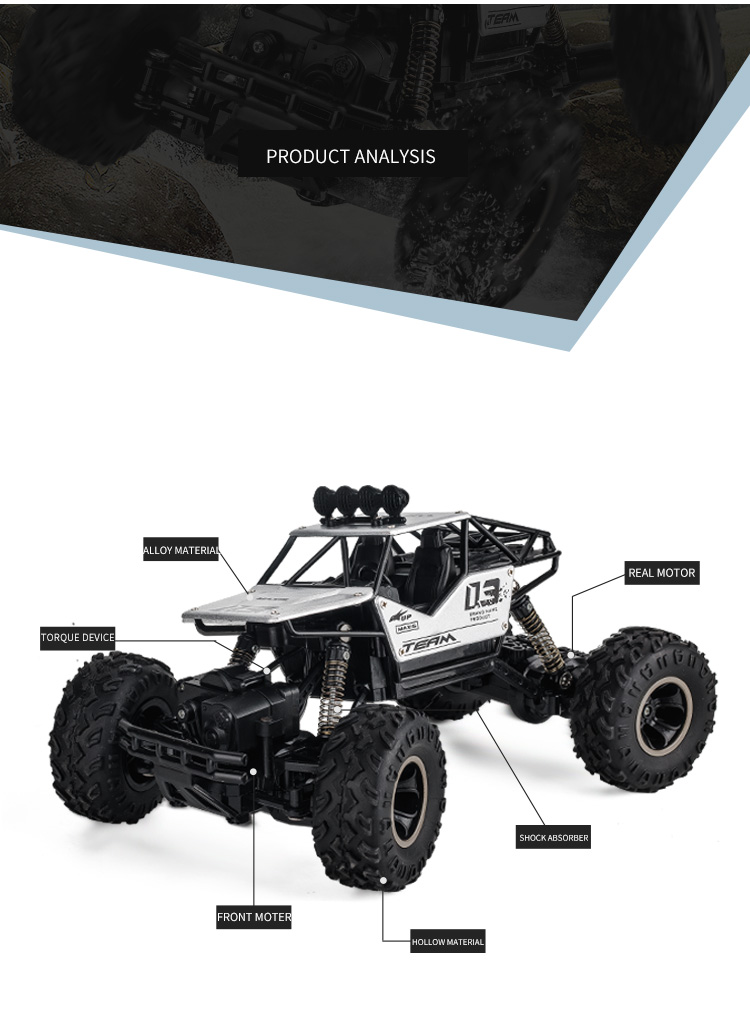 Crafted from high-quality alloy and ABS materials, this remote control car is built to withstand the rigors of off-road play. It’s an ideal gift for RC enthusiasts, kids, or anyone who loves rugged, action-packed fun.