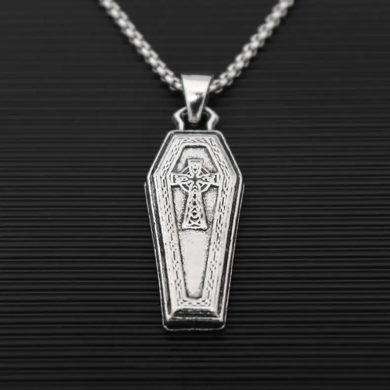 The Alloy Coffin Cross Pendant Necklace is not only visually striking but also carries deep significance. The coffin shape represents mystery and transformation, while the cross symbolizes faith and protection. Whether you're wearing it as a personal statement or for its symbolic meaning, this necklace adds a unique touch to your style.