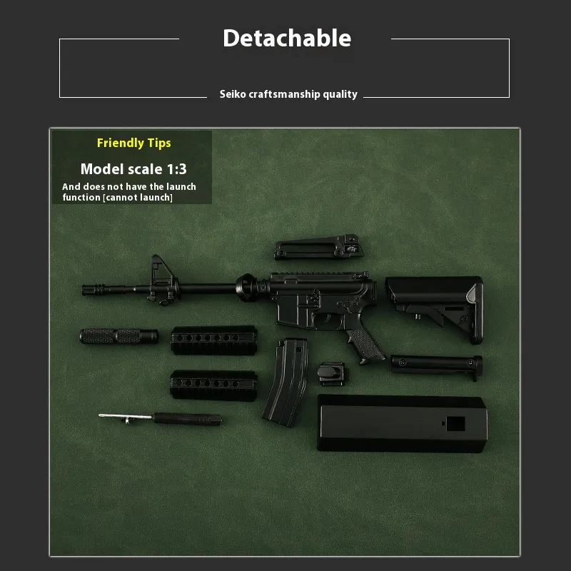 Made from durable alloy metal, the Alloy Military Model Detachable Metal Gun Toy is built to last. Its sturdy design not only offers a realistic look but also gives a substantial, authentic feel. This model toy gun replicates real military firearms with precision, from the design of the barrel to the details of the trigger and magazine. The alloy construction ensures durability, while the attention to detail makes it a standout piece for any military model collection.