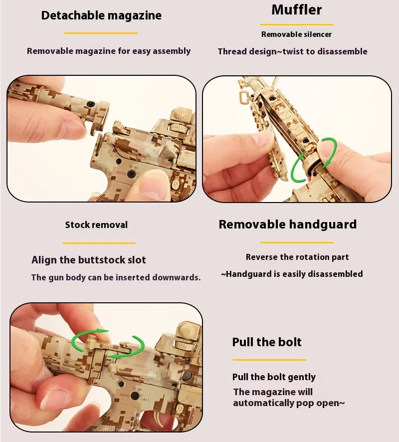 One of the most unique features of the Alloy Military Model Detachable Metal Gun Toy is its detachable design. This interactive toy allows you to remove various parts, such as the magazine or stock, providing a hands-on experience that brings this model to life. The detachable components add an extra layer of engagement, making it not only a visual delight but also a fun, functional piece to display or play with.