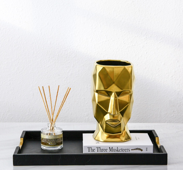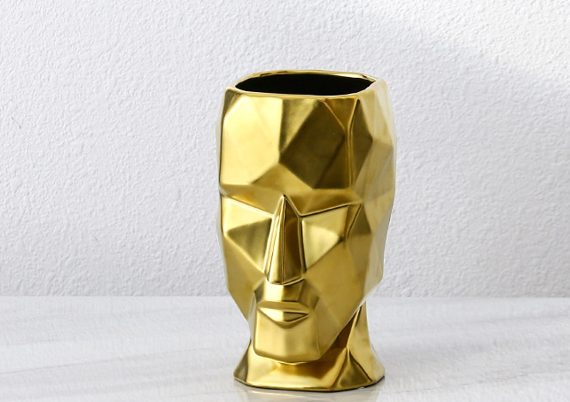 Add a touch of modern elegance to your space with the American Modern Golden Abstract Human Face Vase. This unique, artistically designed vase features an abstract human face sculpted with smooth, clean lines that exude sophistication and creativity. Crafted from high-quality, durable ceramic, this vase has been finished with a luxurious golden glaze that catches and reflects light, making it a captivating centerpiece in any room. Measuring [insert size], it's an ideal fit for coffee tables, shelves, office desks, or entryway consoles. Whether displayed on its own or filled with fresh flowers, dried grasses, or elegant pampas, this abstract face vase blends seamlessly with various décor styles— from contemporary and industrial to minimalist and eclectic. Perfect for art lovers and décor enthusiasts, this vase is more than just a vessel; it’s a statement piece that embodies the allure of modern American design with a touch of golden artistry. Use it to enhance your home, gift it to someone special, or simply add an eye-catching element to your office. Transform your space into a stylish, art-inspired environment with this standout decorative vase.