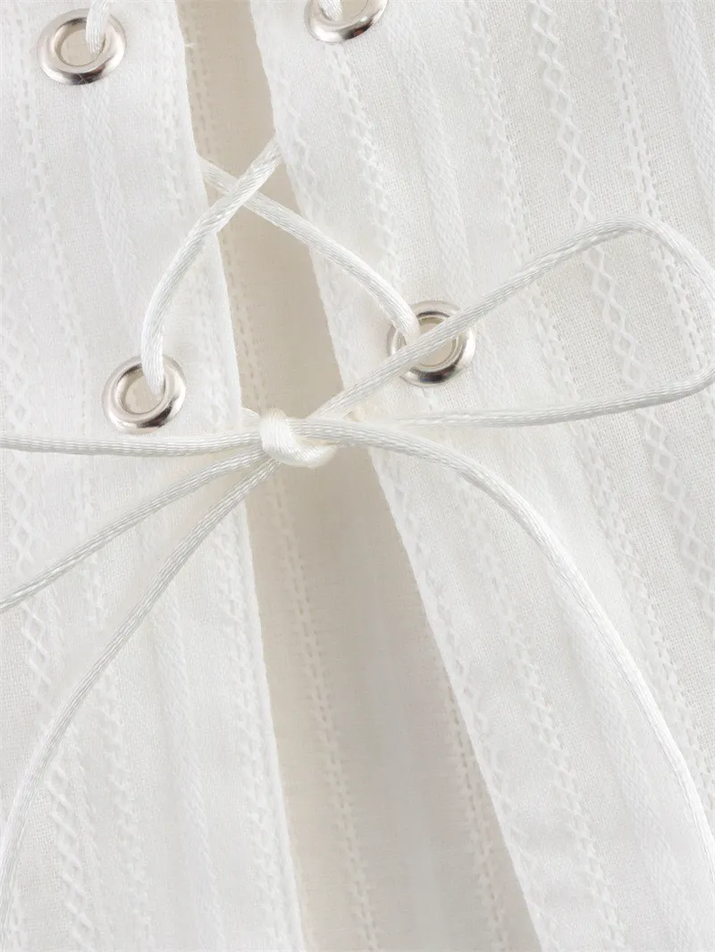 American Style Trendy Solid Color White Strap Top with Rope Sleeveless Short