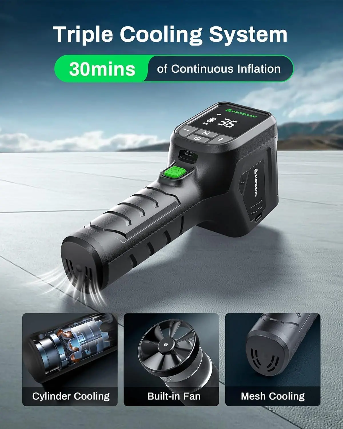 Compact and easy to store, this portable air pump delivers powerful performance without the need for bulky equipment. Whether you're dealing with a flat tire on the highway or simply topping off your tire pressure, the AMPBANK AT001 ensures that you can get back on the road quickly and safely.