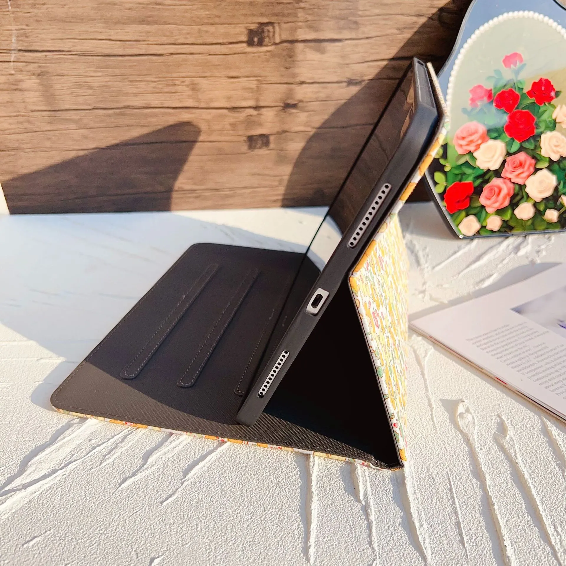 📱 Pad Protective Leather Case – Flower Design & Drop-resistant with Pen Slot